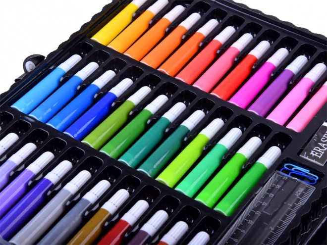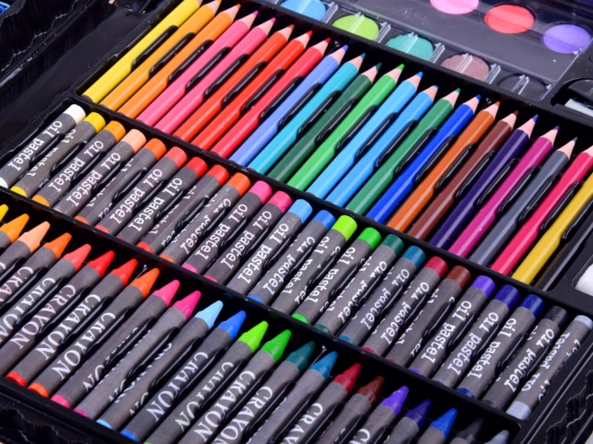 امنح طفلك تجربة فنية متكاملة مع مجموعة الرسم المكونة من 150 قطعة، التي تحتوي على كل ما يحتاجه للرسم، التلوين، والإبداع