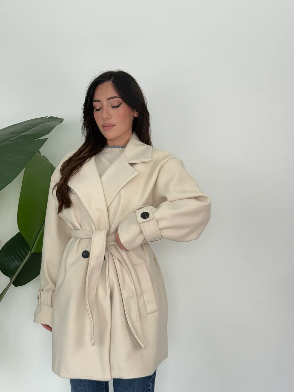 Apportez une touche de raffinement à vos tenues avec le Manteau Élégance Classique, une pièce intemporelle qui incarne parfaitement la féminité et la sophistication. Sa coupe droite légèrement ajustée met en valeur la silhouette tout en assurant un confort optimal. Confectionné dans un tissu doux et chaud, il est idéal pour affronter les journées fraîches avec élégance. Ses détails soignés — ceinture à la taille, boutons contrastés et col large — ajoutent une note chic et moderne à votre look.