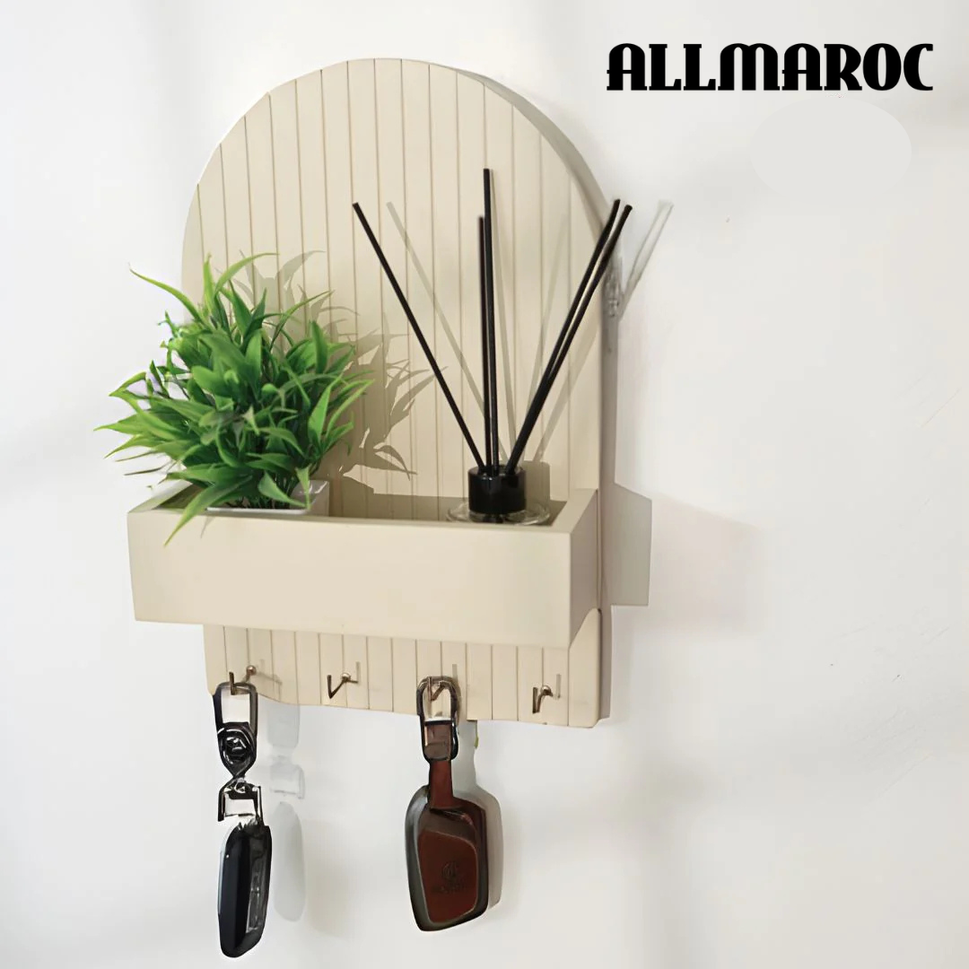 Un porte-clés mural ingénieusement pensé, combiné à une étagère de rangement décorative — l'accessoire parfait pour suspendre vos clés tout en exposant vos plantes, diffuseurs ou petits objets déco avec style. Un véritable deux-en-un qui allie fonctionnalité et raffinement dans votre espace de vie.