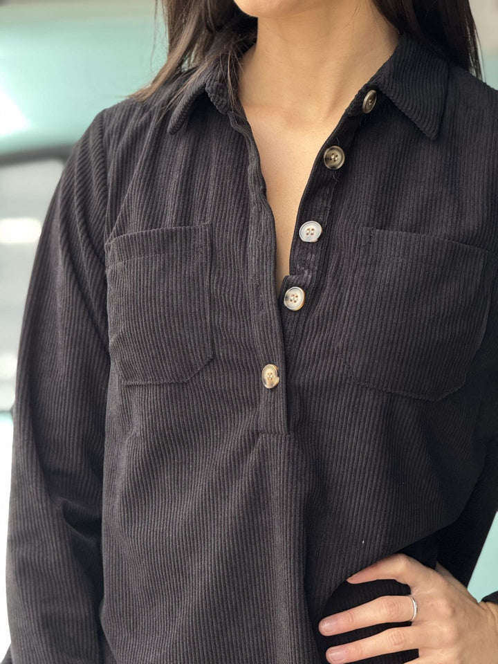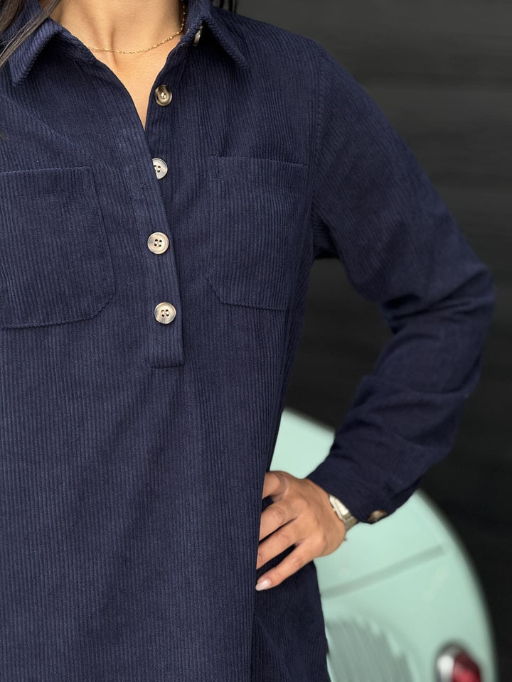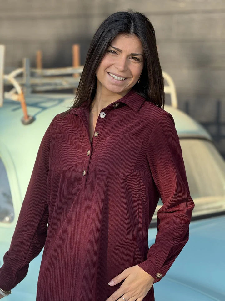 Plongez dans l’élégance de cette robe courte à manches 3/4, conçue en velours doux et agrémentée d’une patte de boutons délicate. Ses deux poches poitrine ajoutent une touche pratique tout en conservant un style raffiné. Disponible du 36/38 au 48, elle épouse toutes les silhouettes avec chic et confort.